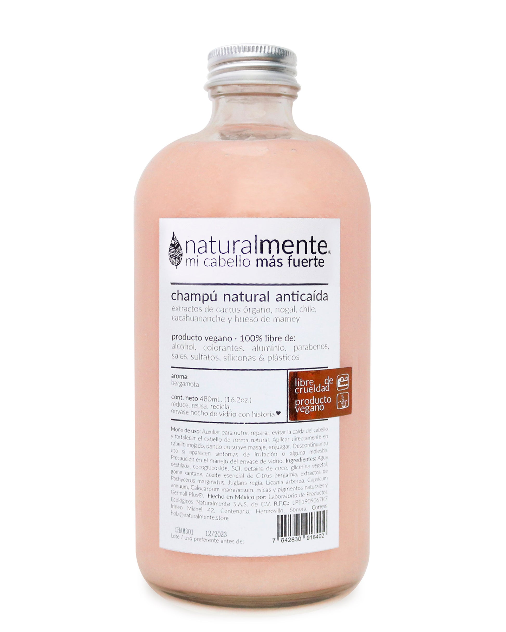 NATURALMENTE - Champú Anticaída Aroma Bergamota (Extractos de Cactus Órgano + Chile + Cacahuananche + Nogal + Hueso de Mamey)