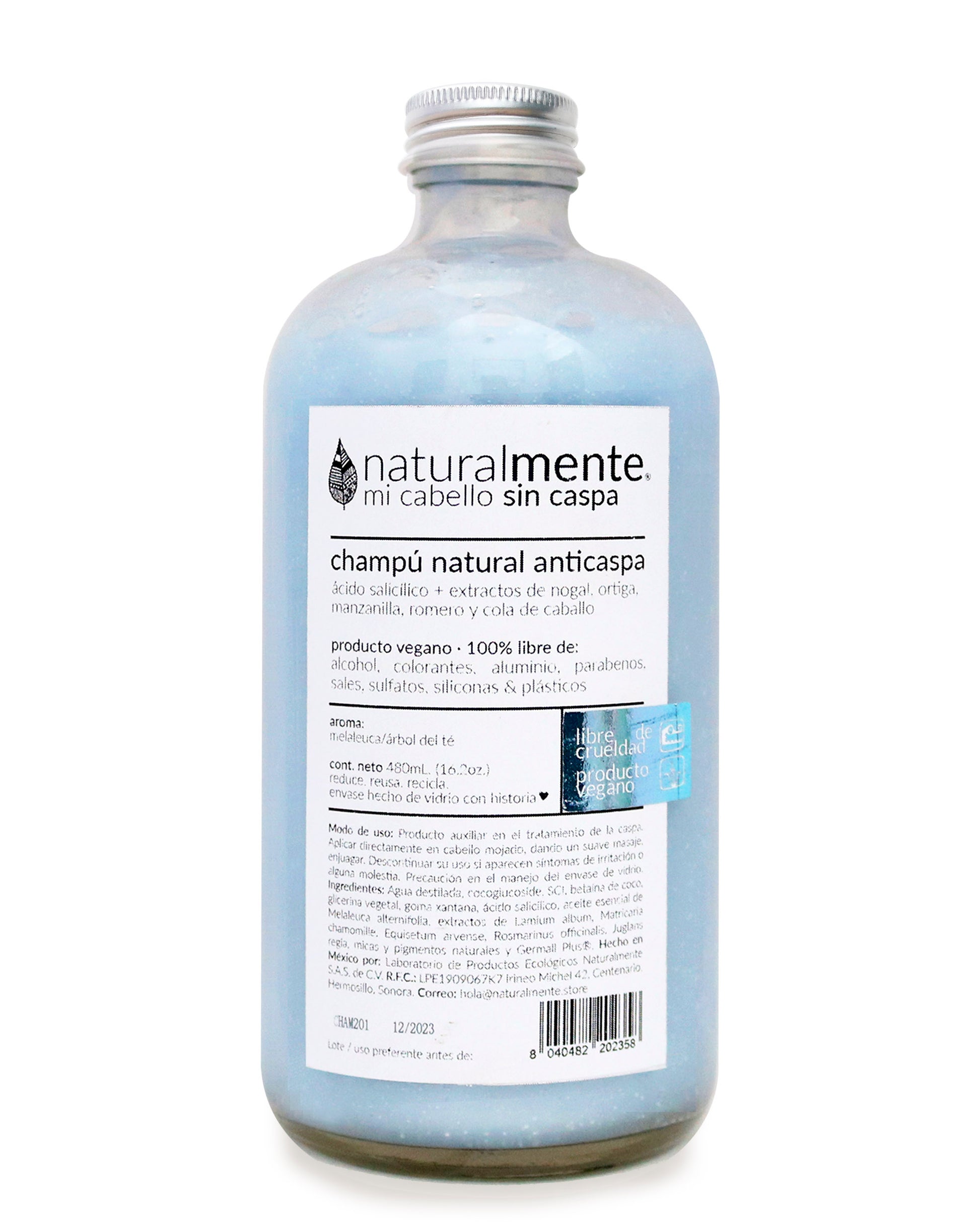 NATURALMENTE Champú Anti Caspa - Ácido Salicilico + Nogal + Ortiga + Manzanilla + Romero + Cola de Caballo - Aroma Melaleuca