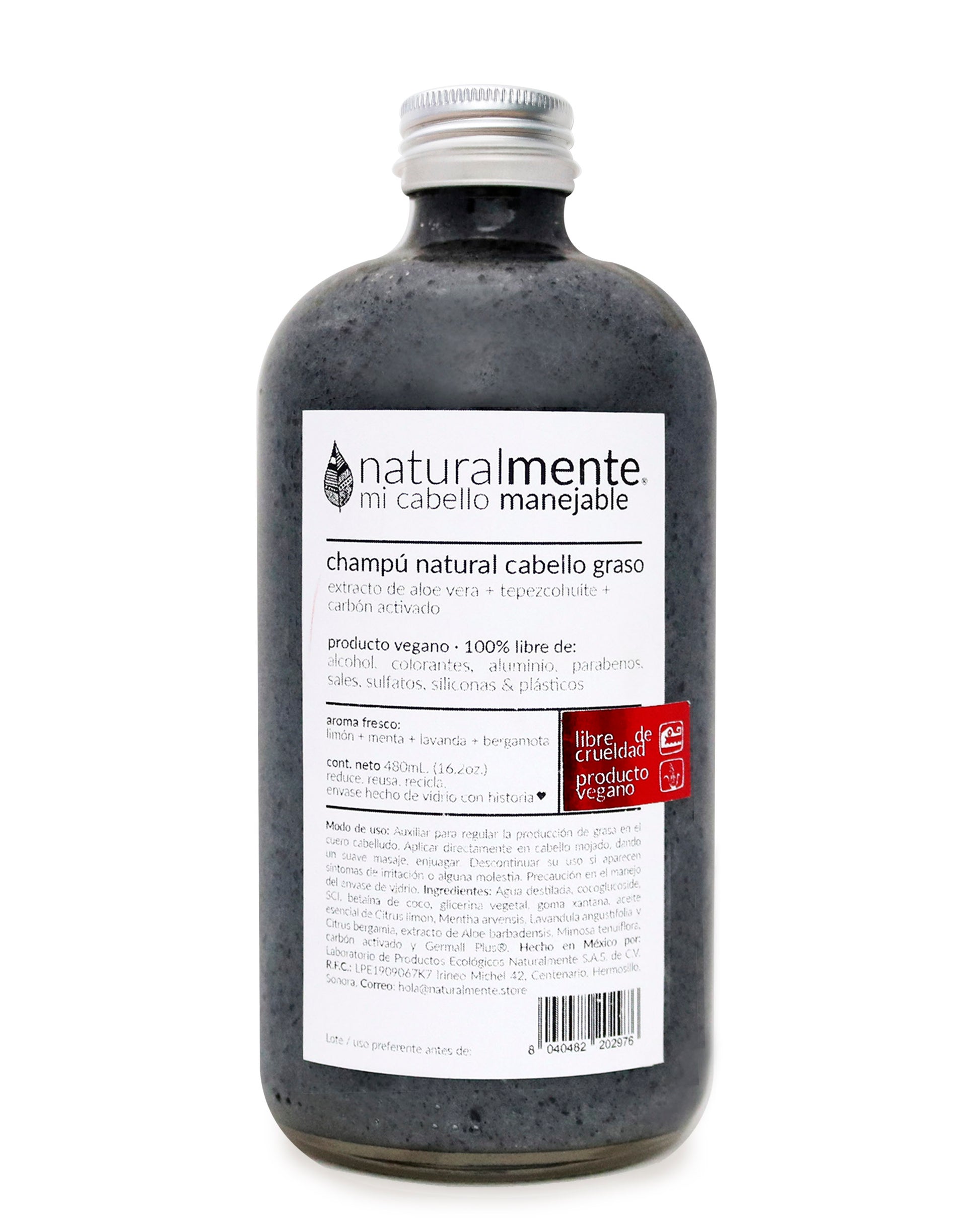 · Adicionado con activos naturales con propiedades conocidas para regular la producción excesiva de grasa del cuero cabelludo como el famoso tepezcohuite y carbón activado.