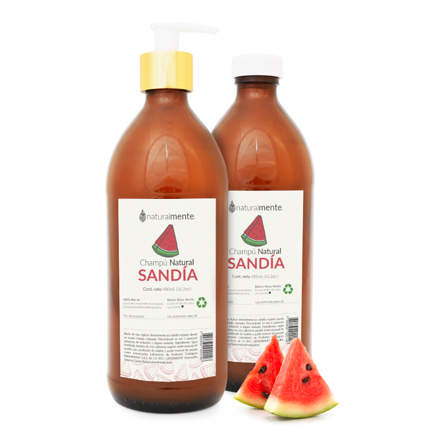 - Ingredientes: Agua destilada, betaína de coco, glicerina vegetal, aceite esencial de sandía con certificado de análisis y aceite esencial de toronja como conservador.