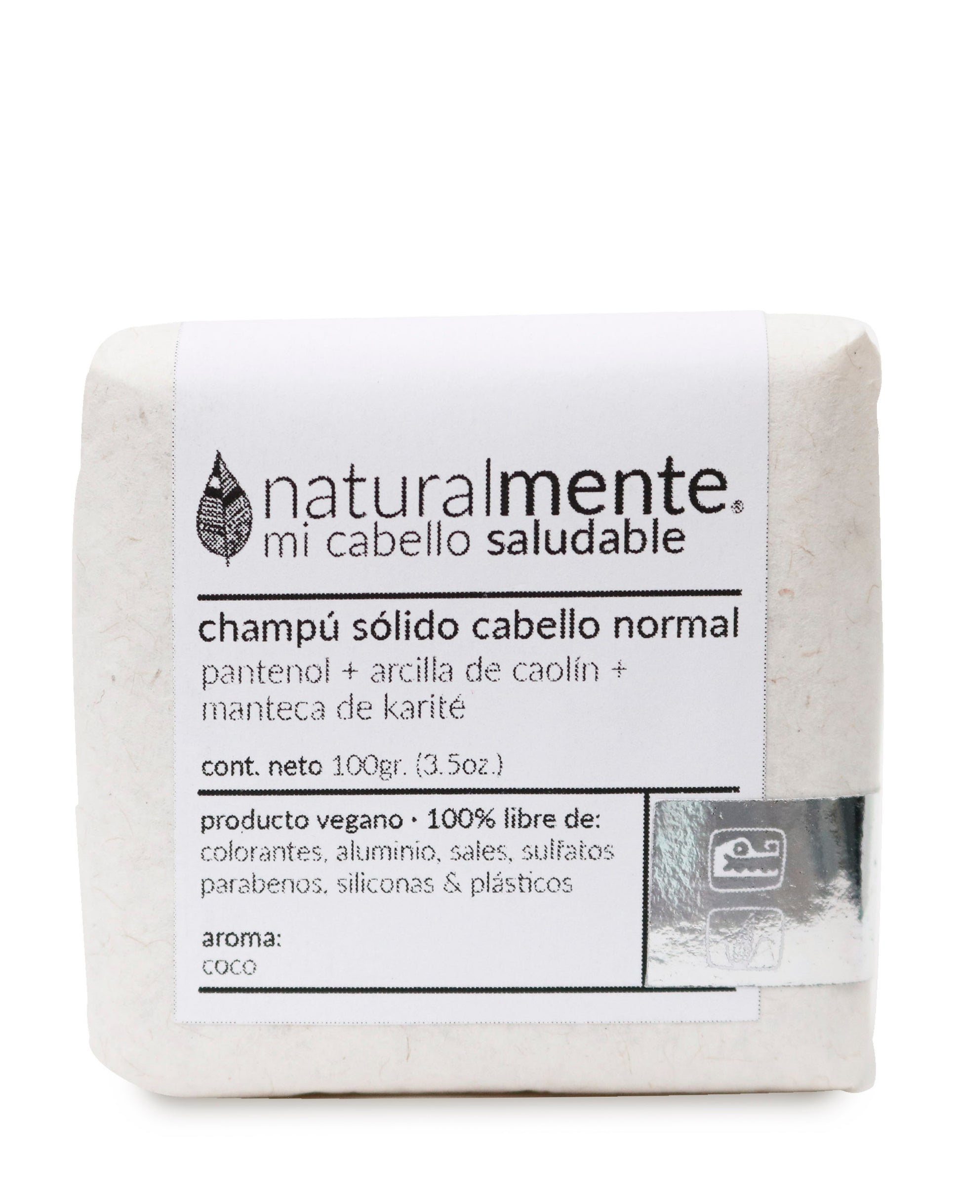 NATURALMENTE Champú Sólido Cabello Normal - Pantenol + Caolín + Karité - Aroma Coco 100 gr.
