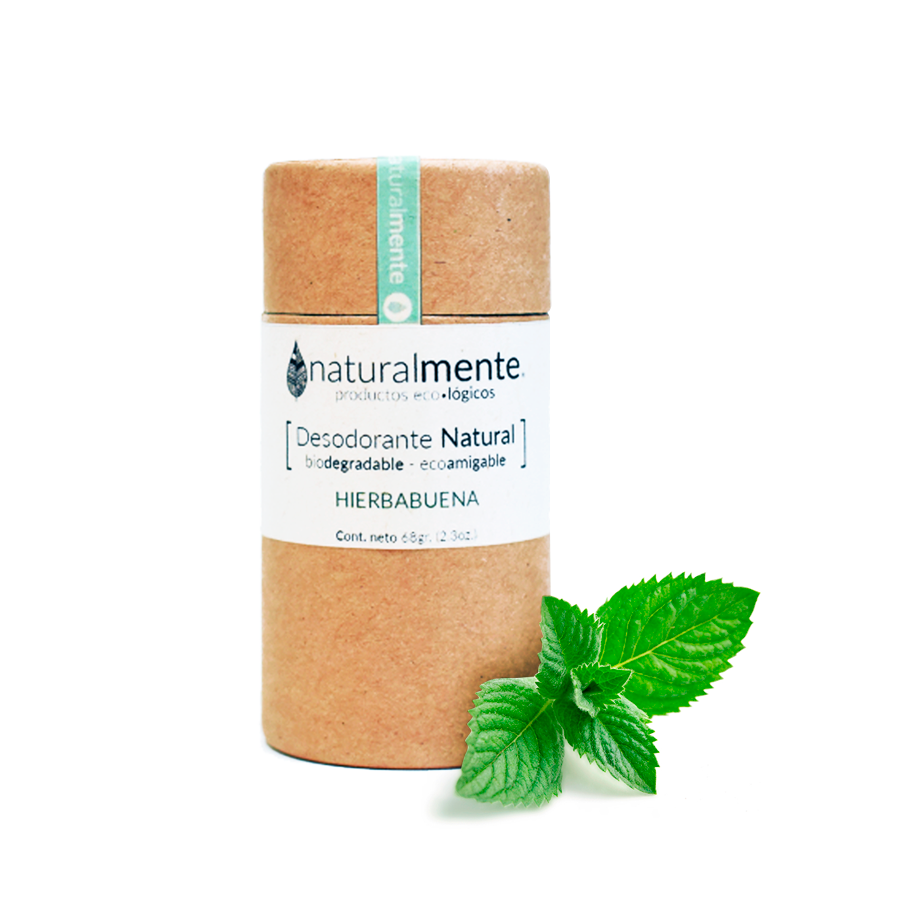 NATURALMENTE Desodorante Natural en Barra (Aroma Hierbabuena) Envase Ecológico de Cartón 68 gr.