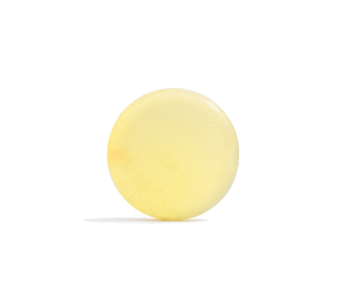 Presentación comercial: Jabón en barra traslúcido con envoltura de papel kraft.