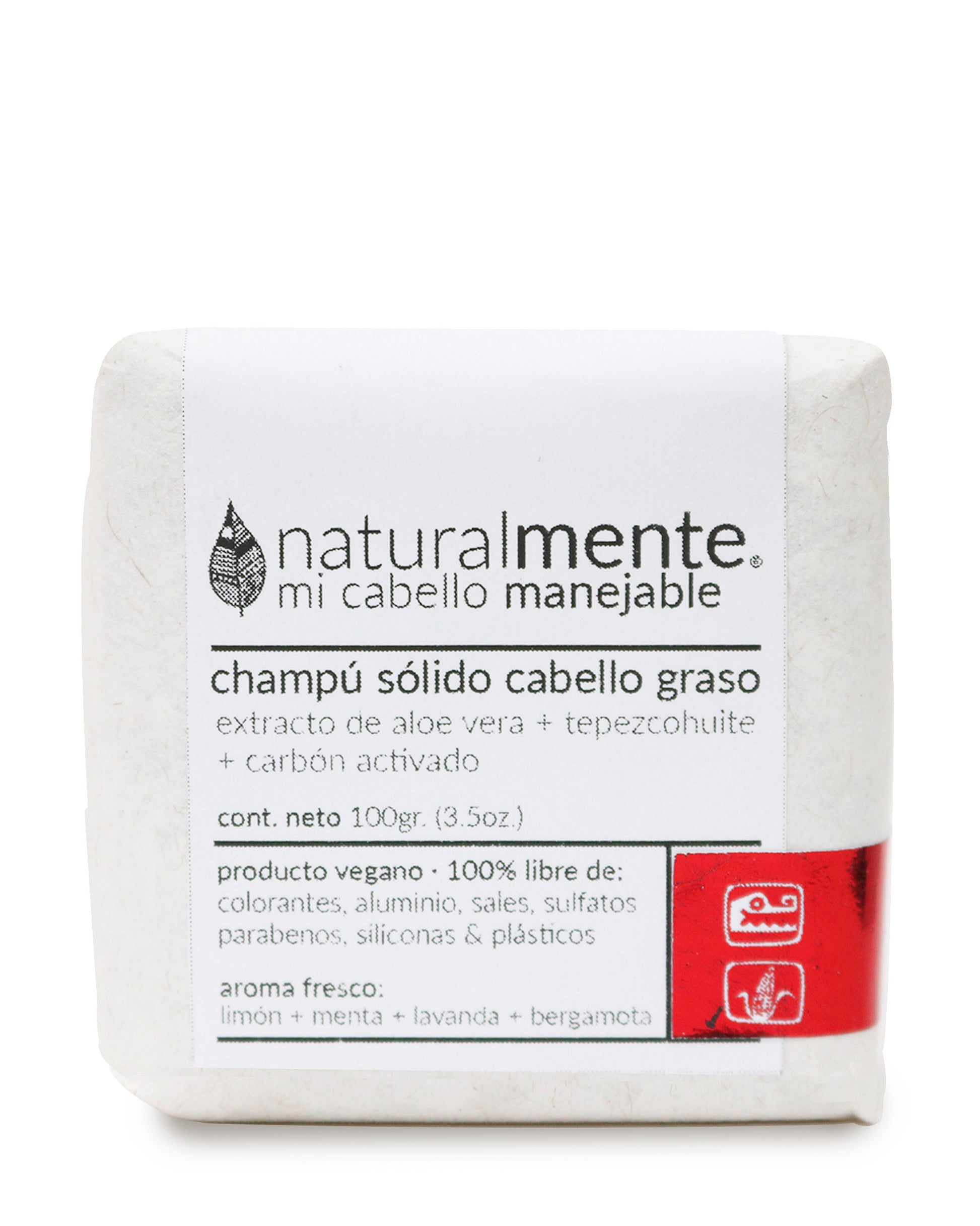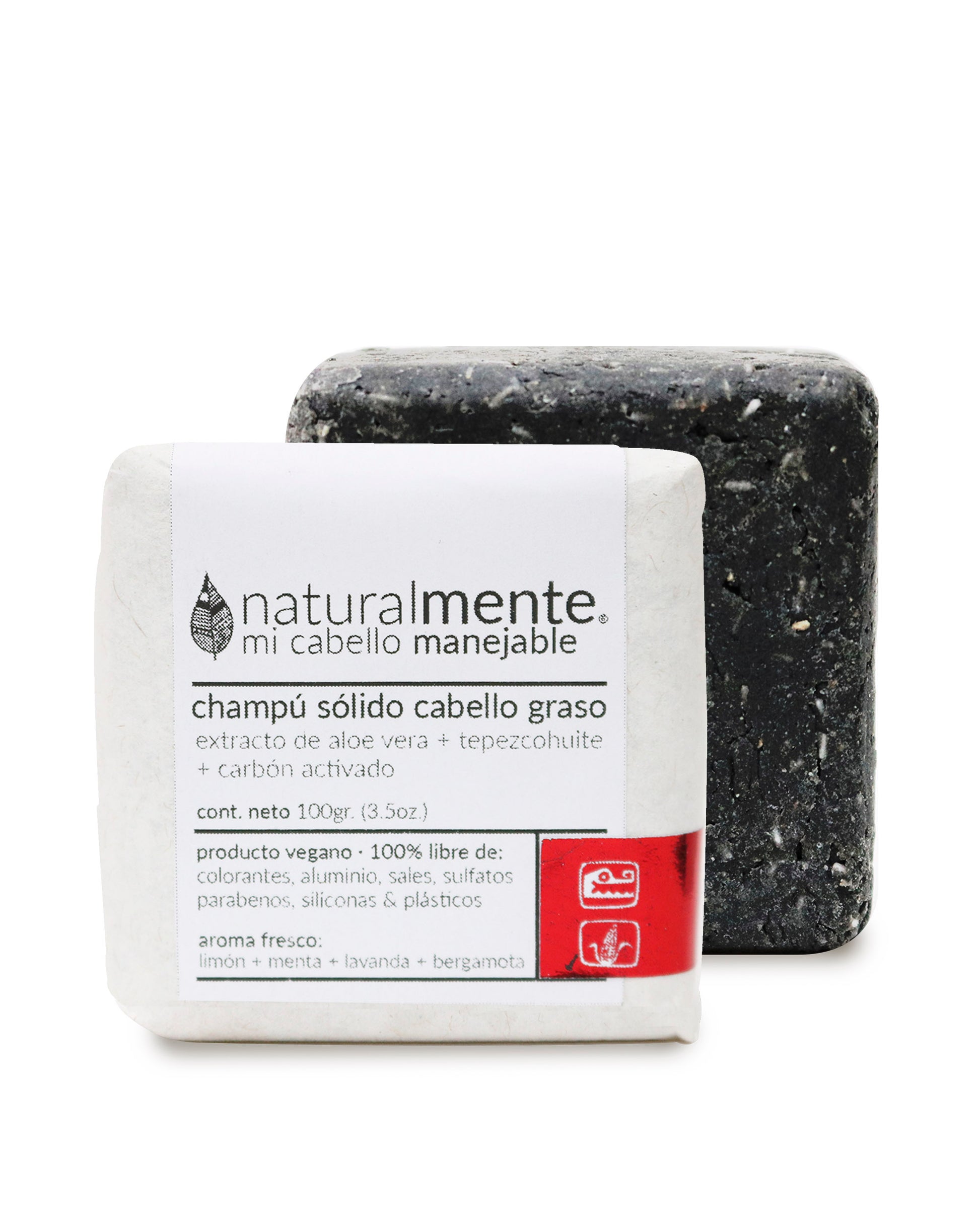 NATURALMENTE Champú Sólido Cabello Graso - Aloe Vera + Tepezcohuite + Carbón Activo - Aroma Fresco 100 gr.