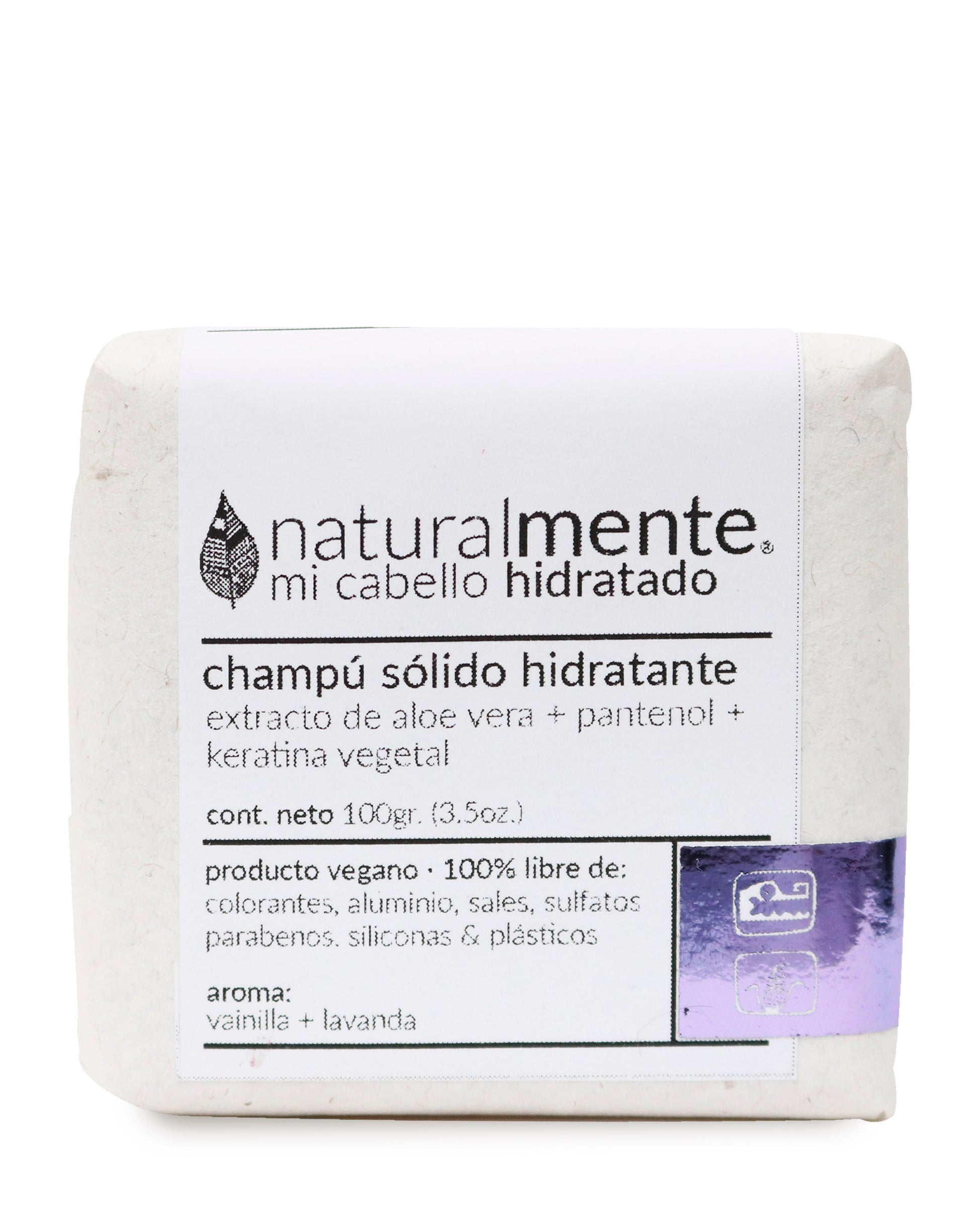 NATURALMENTE Champú Sólido Hidratante - Keratina Vegetal + Pantenol + Aloe Vera - Aroma Lavanda Vainilla 100 gr.